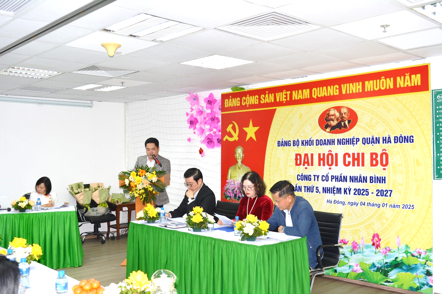 Tại đại hội, đồng chí Ngô Thanh Phương đã thay mặt Chi bộ trình bày báo cáo chính trị của Chi bộ; Kiểm điểm của cấp uỷ nhiệm kỳ 2022 – 2025 và Phương hướng, mục tiêu, nhiệm vụ và giải pháp nhiệm kỳ 2025-2027. Trong nhiệm kỳ vừa qua, Chi bộ đã hoàn thành tốt các nhiệm vụ về chính trị tư tưởng, lãnh đạo công tác chuyên môn, công tác xây dựng Đảng, lãnh đạo công đoàn… Chi bộ Công ty cổ phần Nhân Bình đã thực hiện được những mục tiêu Nghị quyết đề ra. Các Đảng viên luôn đoàn kết nhất trí, quyết tâm xây dựng Chi bộ ngày càng phát triển.